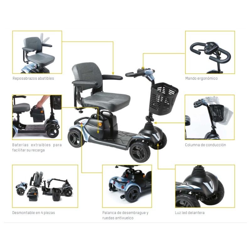 Todas nuestros scooter de movilidad reducida son sencillos de usar, desmontables, ligeros y fácilmente transportables.